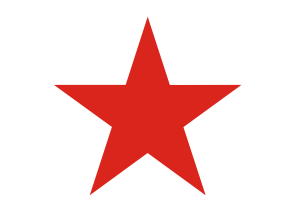 Dimensions, excluding heading and unfinished flag ends: The hoist or flag width is two-thirds of the fly or flag length; the red stripe width is one-sixth of the hoist width. The state official flag hoist widths shall be two, three, four, five, six and eight feet. The diameter of an imaginary circle passing through the points of the star is one-tenth of the fly length; the distance of the star center from the hoist end is one-sixth of the fly length and the distance from the star center to the top of the flag is four-fifths of the star-center distance from the hoist end. The length of the bear diagonally from the nose tip to the rear of right hind paw is two-thirds of the hoist width; the height of the bear from shoulder tip vertically to a line touching the bottoms of the front paws is one-half the length of the bear; the location of the bear in the white field is such that the center of the eye is midway between the top and bottom of the white field and the midpoint of the bear's length is midway between the fly ends. The grass plot in length is eleven-twelfths of the hoist width and the plot ends are equidistant from the fly ends; the average width of the plot between the rear of the left front paw and the front of the right rear paw is one-tenth of the grass plot length. The height of the condensed gothic