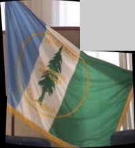 Palo Alto does have a city flag. It was designed by a city employee and officially adopted by the City Council in 1967. The employee was Christa Gupton. The flag has the city seal on the middle band with a band of blue and green on either side. The seal includes El Palo Alto, the old redwood tree (more than 1000 years old) that is the symbol for both the city and Stanford University. The tree was spotted by Spanish explorers to California in the late 18th century, and was quite distinctive as it was a double-trunked tree out on the valley floor rather than in the hills where most of the coastal redwoods were to be found. One of the trunks fell sometime in the 1880's, a few years before the city and Stanford University were established. Further information is available at www.cityofpaloalto.org