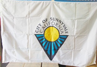 / CALIFORNIA", above. Photo of the flag thanks to Charles Wright, Senior Office Assistant, City of Sunnyvale - City Clerk's Office