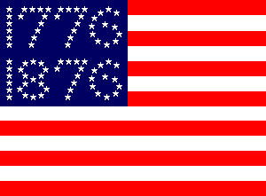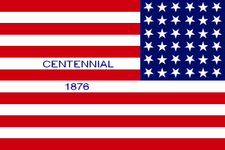 "Centennial" flag of 1876 - As depicted in the postage stamp. 13 red/white stripes and blue canton with 80 white 5-pointed stars arranged in the form of the dates "1776" (36 stars) over "1876" (42 stars).