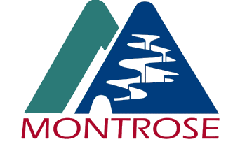 A white flag depicting two triangles, greenish-blue and blue, one with a canyon etched into it in white, and the name in red across the bottom.