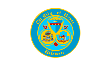 Dover is the state capital and county seat of Kent County. According to a photograph on the city's website, the city flag features the city seal on a white background. I'm not sure exactly of what is in the seal, though there seems to be a resemblance to the Kent County coat of arms. Around the outside of the seal are the words "The City of Dover Delaware."