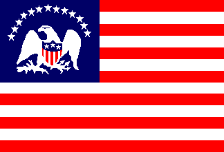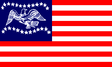 One unusual variation of the U.S. flag was a 26 star flag carried by western explorer John C. Frémont, who later became the first Republican candidate for President. Between the rows of stars in the canton of his flag was an eagle. The eagle held the usual arrows of war, but the olive branch of peace was replaced by the calumet, or peace pipe. He hoped that this would be accepted by the Indians he met in his travels as a token of his peaceful intentions.