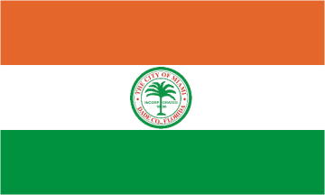 The Miami city flag is an orange-red over white over green horizontal tricolor, with the city seal in the center of the white stripe (example at www.ci.miami.fl.us).