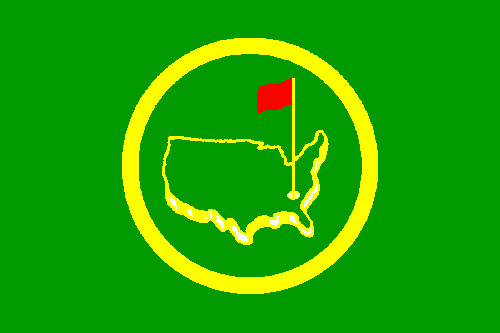 I have attended the Masters Golf Tournament for several years, and have seen this flag there. I have drawn it from several photos I have taken during practice rounds at the golf tournament. It flies from the pole in front of the clubhouse. Based on photographs, and in making a comparison with the U.S. Flag flying above the ANGC Club flag, I believe the club flies a 6' x 10' U.S. flag, and that the size of the club flag is 5' x 8'.