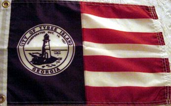 "Frankie Soloman, who works for the City of Tybee in the Recreation Department, designed the flag. Frankie had the idea many years ago and until just recently it was only a dream. The flag has seven(7) stripes and represent the seven (7) flags that have flown over Tybee - American, Georgia, Confederate, English, Pirate, Spanish and French. The Blue represents "tranquility on Tybee."