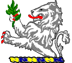 "A demi-lion rampant argent, holding in dexter paw a laurel branch vert."