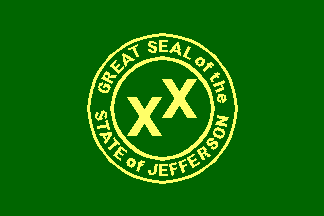 Traveling through the area in 1999, I saw several signs and bumper stickers proclaiming "State of Jefferson." Their website includes their flag, with the typical Gold Seal on Blue Bedsheet, and the history of their "secession".
