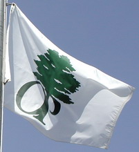 The flag of Overland Park is the city logo (OP and tree) in green on a white field. A photo of the flag can be seen at