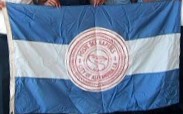 Blue-white-blue horizontal tricolor, with the seal in the center.