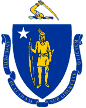 The Massachusetts coat of arms is legally described as "a shield having a blue field or surface with an Indian thereon, dressed in a shirt and moccasins, holding in his right hand a bow, and in his left hand an arrow, point downward, all of gold; and, in the upper corner of the field, above his right arm, a silver star with five points. The crest is a wreath of blue and gold, on which in gold is a right arm, bent at the elbow, clothed and ruffled, with the hand grasping a broadsword."