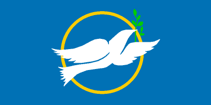 is blue, shown a gold ring, and a white dove bearing an olive branch - quite appropriate to the city's name.