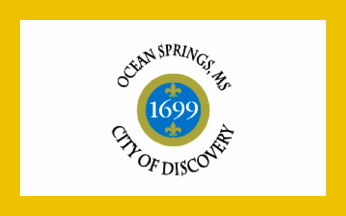 SPRINGS,MS" above and "CITY OF DISCOVERY" below. Johnnie Bernhard, Public Relations Administrative Officer of the City of Ocean Springs sent me PDF with image of the flag.
