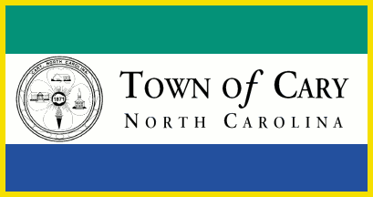 - The official Town seal--shown in onyx black--followed by the words, "Town of Cary, North Carolina" across the central band of pearl white;