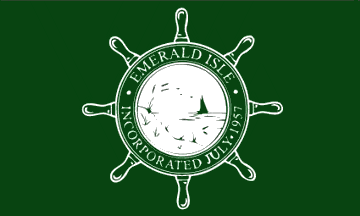 The flag of Emerald Isle is in proportions 3:5 (size, 3' x 5'), green with a green and white version of the town's seal in the middle,