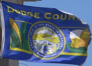 A photograph of the flag of Dodge County, NE, can be seen on this photo: