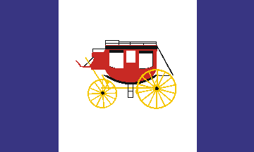 The flag used in the City Chambers differs from the flag officially described, having only one blue bar. The reverse of this flag retains the arrangement of the stagecoach, so is not a mirror image: