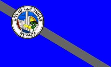 A blue flag with a grey stripe from upper hoist to lower fly. In the upper hoist, the seal of the city.