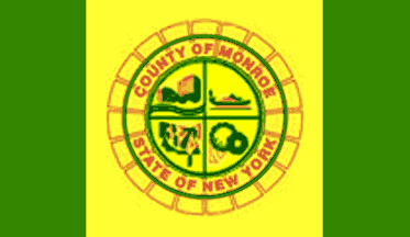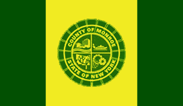 At www.rnews.com/Story_2004.cfmID=28919&rnews_story_type=18&category=10 there is confirmation that Monroe County, New York, has a flag. There is a news article about the County Executive presenting a Boy Scout group with county flags. An accompanying photo shows the flag being presented- it is folded up and only a gold portion is visible. Behind the Executive is a flag draped on a staff, which may be a better view of the same flag. A lot of it is still obscured, but it appears to be a vertical tribar with a green/gold seal in the center panel. Another photo of the flag appears at www.monroecounty.gov/org32.asp?orgid=32&storyID= behind the County Legislators, adding to the likelihood that it is the county flag. At that page there are also 2 images of the county seal. Finally, a photo at www.billsmith.org/pic01.htm clearly shows that the flag is green-yellow-green.