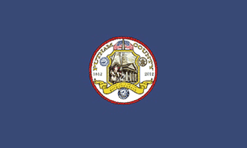 The prominent image on this flag celebrates Putnam’s 2012 bicentennial: Two American flags —the one flown in 1812 and in 2012 —are shown. An image of the county’s famous courthouse and its namesake, General Israel Putnam, sit inside the shield. The three circles are the original county seal (on the left), the current seal (on the bottom), and a War of 1812 soldier’s grave marker (on the right).