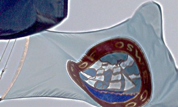 The flag of the City of Oswego, New York, is light-blue with city seal on it. It can be seen on a Waymarking website: www.waymarking.com.