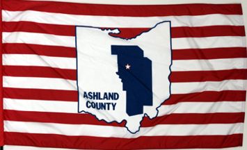 Ashland County's flag displays the red, white, and blue of both Old Glory and the state banner of Ohio.