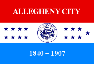 To the best of my knowledge, Allegheny City no longer exists as a municipal entity. It is the portion of the City of Pittsburgh north of the Ohio River and was absorbed into Pittsburgh, as the dates on the flag indicate, in 1907. I believe the flag shown is kind of a commemorative item devised by a civic association trying to preserve the area's heritage.