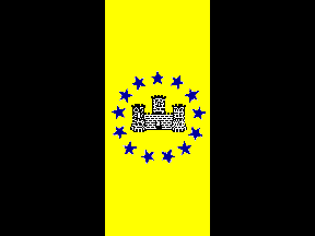 Black-yellow-black vertical tricolor with arms on yellow stripe.