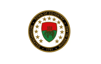 A white flag bearing the town seal, consisting of an outer gold-edged black ring with the town name, state name and date; an inner partial ring of 13 gold stars, and a central shield divided horizontally red over green bearing an elephant with harness.