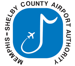 Our flag is simply our logo on a white field (see attached logo); Memphis-Shelby County Airport Authority is the governing body of the Memphis International Airport. Our Logo incorporates a music note skywritten by an aircraft in a blue sky field to depict Memphis' legendary music heritage as Home of the Blues and Birthplace of Rock n' Roll. Don't know the exact font.The image above of their flag has different proportions than described in Ms. Young's response.