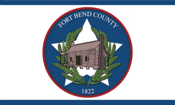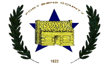 "Commissioners Court adopted a modernized County flag originally designed in 1980 by Lamar High School Student, Jeff Siptak. The flag carries the year 1822, which is the year that the first settlers landed in FBC. It depicts sheaves of