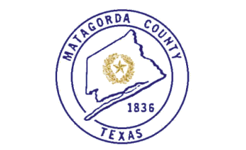 The Matagorda County logo was created by Francis Parker and adopted in 1985. On 8 October 1990, the Commissioners' Court placed the blue and gold design on a white background and adopted it as the County Flag. The flag has a white background with a blue ring in the middle. Inside the ring are the words