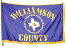 A blue flag with a white map of Texas in the center, surrounded by a ring of stars. The stars on the flag surrounding the state of Texas represent the thirty-three viable communities identified by Clara Stearns Scarbrough in her 1973 book, Land of Good Water. In 1970, these communities ranged in population from twenty people in Norman’s Crossing to more than 10,000 residents in Taylor. It is difficult to establish how many communities exist in Williamson County today, because the determination of “community” is subjective and without set criteria. However, in Williamson County in 2004, there were eleven towns with populations of over 1,000 people and seven towns with populations above 5,000.