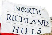 The name written in dark green on three lines in block capitals, a compass rose in the O of NORTH, and a grey line between each line of text.