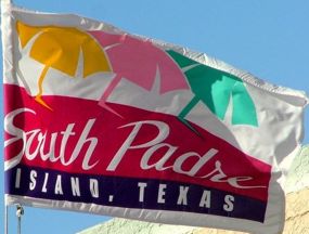 Photo of the town flag can be seen on a Waymarking website: www.waymarking.com/waymarks/WM3FH6_South_Padre_Island_Texas. It is