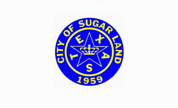 From the city website I found www.sugarlandtx.gov/sugarland/forms_publications/documents/pdf/Dec04_Jan05.pdf where the Dec04/Jan05 city newsletter; page three has an article on the city's new logo and mentions that the old one was adopted in 1990. The new logo keeps the crown and star logo. The article mentions that items with the new logo will be purchased "during the normal replacement cycle of City assets and inventory", so there may or may not be flags with the new logo. There is a picture at www.sugarlandtx.gov/city_hall/city_admin/index.asp which shows the flag (fuzzily) in the background (more or less as Valentin's image). Sugar Land is located 20 miles from downtown Houston TX.