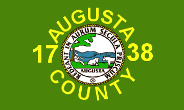 "With some modification, the flag committee has presented a recommendation to the Governing Body. The recommended flag consisted of the rounded seal of Augusta County trimmed in gold and placed on a background of green. On the outside perimeter of the seal, the word Augusta County encircles the seal with the year 1738 placed across the middle of the flag.