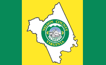 A green-yellow-green vertical triband, ratio 1:3:1, with a white map of the county in the yellow field, on which is the county seal.