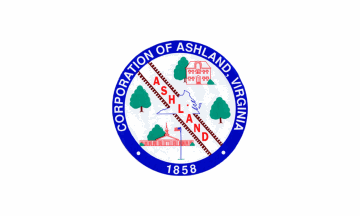 The flag of the Town of Ashland, Virginia, is white with town seal on it. Information and image of the seal thanks to Lois A. Smith, CMC, Clerk of Council.
