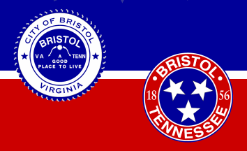 The red, white, and blue flag is made up of the royal blue of the Virginia flag and the deep red of the Tennessee flag. On the upper left section, is the city seal of Bristol, Virginia with our communities most recognizable symbol, the Great Sign. The seal of Bristol, TN is on the lower right section, with the date the city was founded. Neither seal alone tells the whole story of our community. Each seal crosses from one state to the other, symbolizing the way our citizens easily move about, living in one state and working in the other or going to school in one state and church in the other. Last, and most important, is the white bar representing the state line, the state line running through it all. This line does not separate us, rather, it has become the seam that stitches together the two states to form a single community - "Bristol."