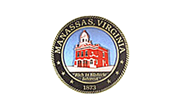 entire city of Manassas is surrounded by Prince William County. Anyway, the city's flag features the city seal displayed on a white field. Unfortunately, the version of the flag that I have attached uses a very poor rendition of the city seal. I will continue my search for a better version of the seal. In the meantime, hopefully this will serve to hold you over until then.