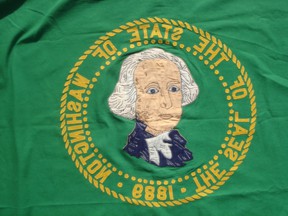 I recently acquired a fully sewn cotton flag of Washington State, in part