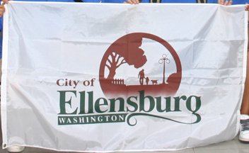 The fag of the City of Ellensburg, Washington, is the city logo in brown and