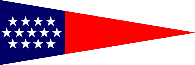 Army Post Commander, circa 1910-circa 1923 - The commander of an army post below general officer rank was authorized to display a pennant in the bow of a boat in which he was embarked. This pennant was 1:3, the hoist (one-third the length of the fly) blue with thirteen white stars in rows of 4, 5, and 4, the remainder scarlet. This pennant was prescribed in the 1910 and 1913 Army Regulations and appears in [gmc17] but is not provided for in the 1923 AR 260-10.