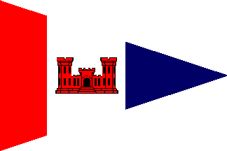 Vessel Flag, Corps of Engineers. This flag is also authorized to be flown on land by Corps of Engineers facilities that are not located on Army installations.