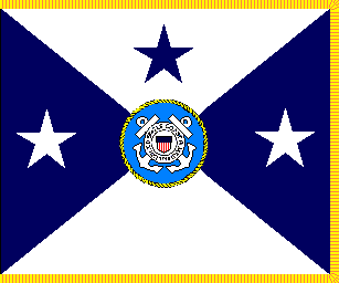 The positional colors of the Commandant and Vice Commandant of the U.S. Coast Guard are in most respects similar to those of the CNO and VCNO of the U.S. Navy. The principal points of difference are that the badge has a light blue background, and that the Vice Commandant's color has only three stars. (The USCG is authorized only one full (four-star) admiral, and this is invariably the Commandant.