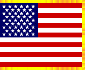 Usage: This version of the U.S. National Flag, called the National Color, is used on parade and for indoor display with all other types of Army flags and colors. For example, all regiments, battalions of regiments and separate battalions are authorized a "stand of colors"--the National Color and their Organizational Color. The dimensions are 3' at the hoist by 4' on the fly with 2 1/2" yellow fringe, i.e. the same as for Army flags and colors. (For display with larger size Army flags and colors, e.g. the Organizational Color of the U.S. Corps of Cadets, dimensions are 4'4" at the hoist by 5'6" on the fly with 2 1/2" yellow fringe.)