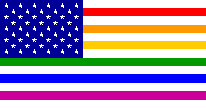 with the 50-star canton as usual, but the stripes were the gay colors (six of them) plus with white stripe between those colors where only the red would appear in a U.S. flag.