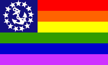 Keywords: rainbow flag | canton | stars: 50 | star: 5 points (white) | yacht ensign | maryland | stripes: 6 | stripes: 13 | stars: 13 | anchor (white) |