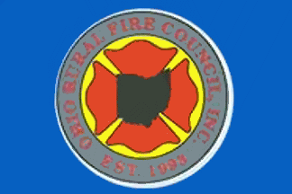 The Ohio Rural Fire Council flag is blue with the organizational emblem centered.